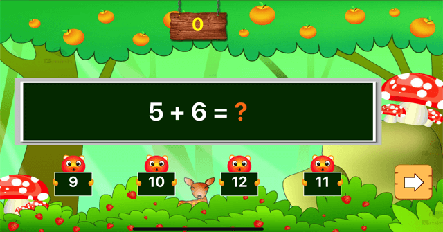 - Phần đếm hình rất hữu ích cho các bé mới bắt đầu vào lớp 1 hoặc chuẩn bị vào lớp 1, sẽ có các hình ảnh ngộ nghĩnh trên màn hình để các bé đếm và chọn đáp án.