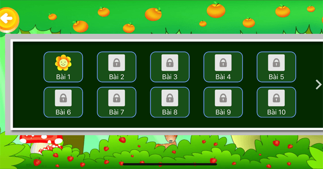 - Các bé sẽ có 10 đề kiểm tra, phải hoàn thành 5/10 điểm thì mới được làm đề tiếp theo, những đề có thể luyện tập là đề có màu đỏ hoặc vàng. Màu đỏ thể hiện bài kiểm tra đã đạt yêu cầu.